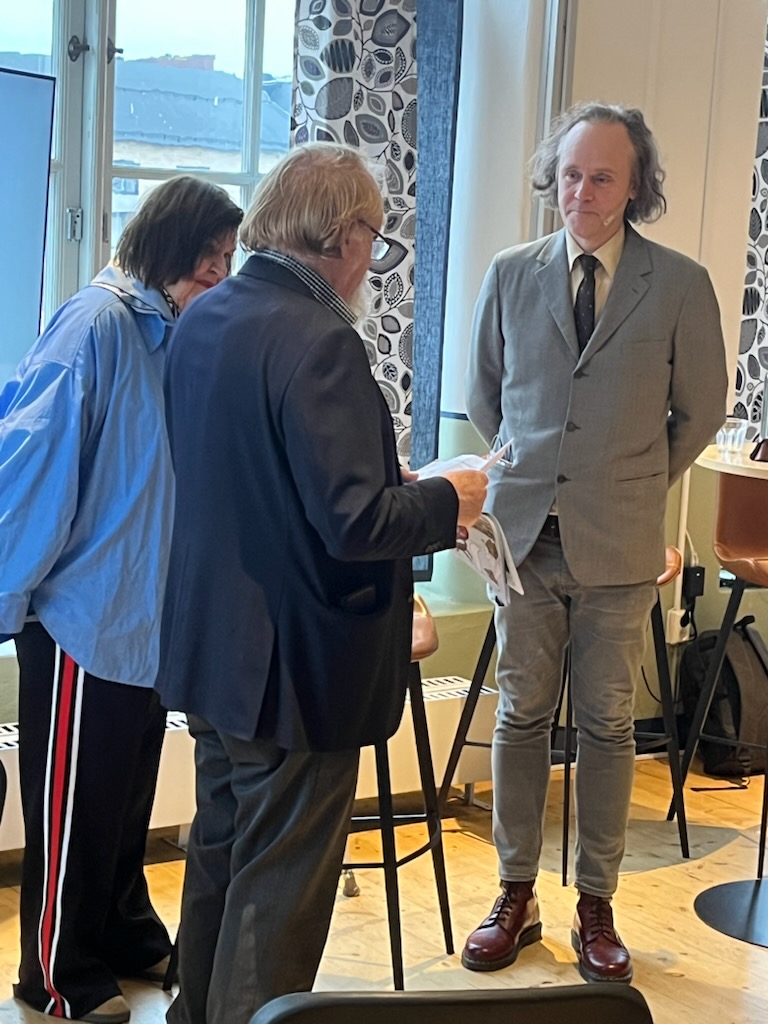 Pontus Lundkvist tog emot EWK-priset på Arbetets museum i Norrköping av EWK-sällskapets ordförande Lars-Olof Johansson och Margareta Van den Bosch, EWK:s dotter.